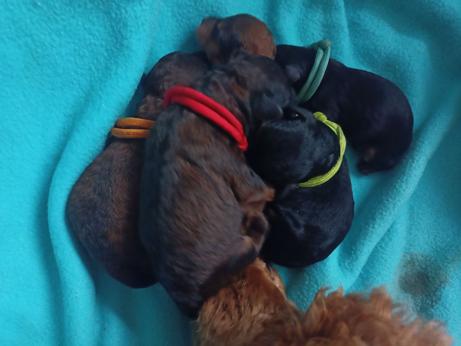 3 Rüden und 2 Hündinnen - in fast ganz anderen Farben als gedacht.