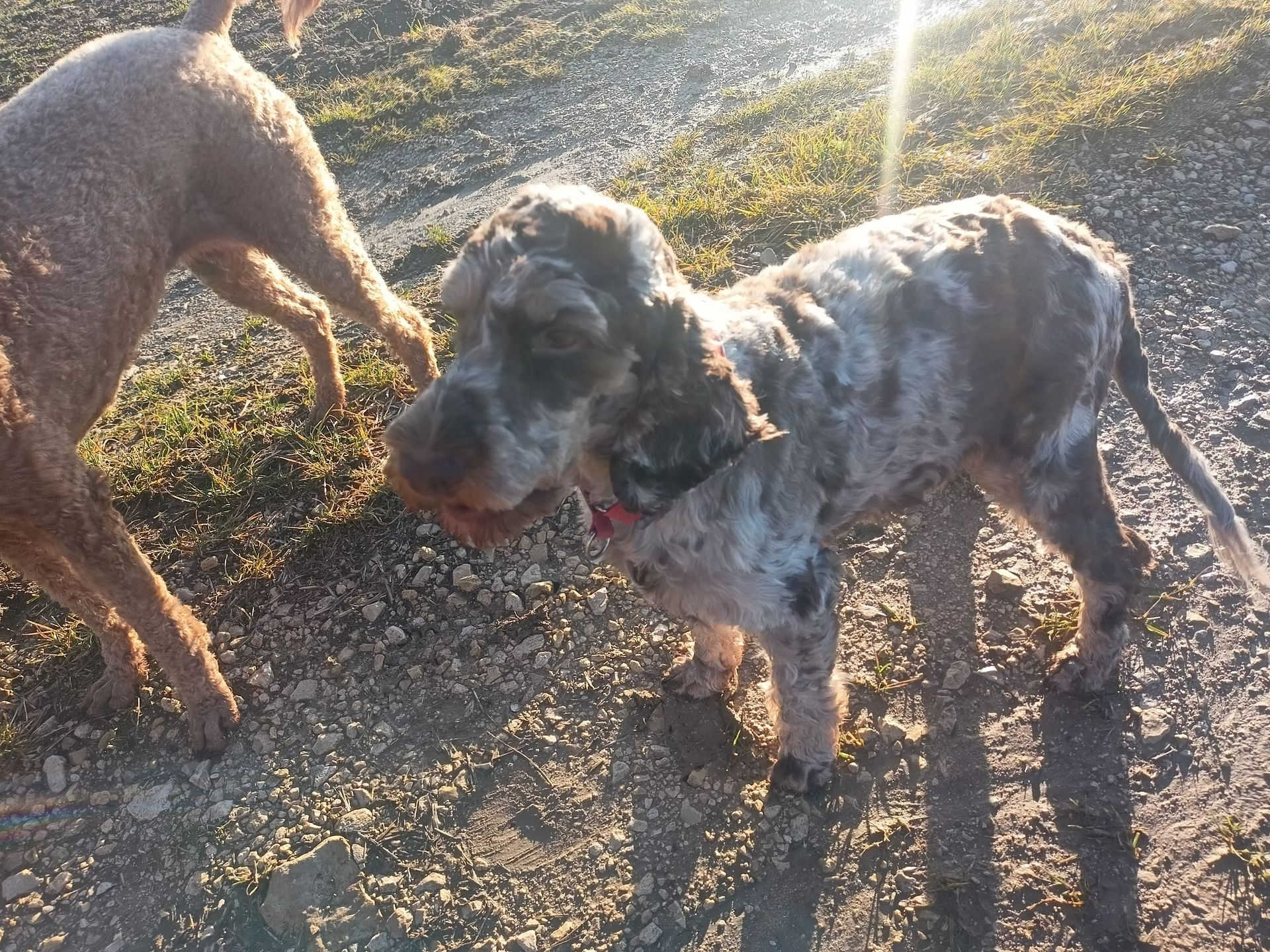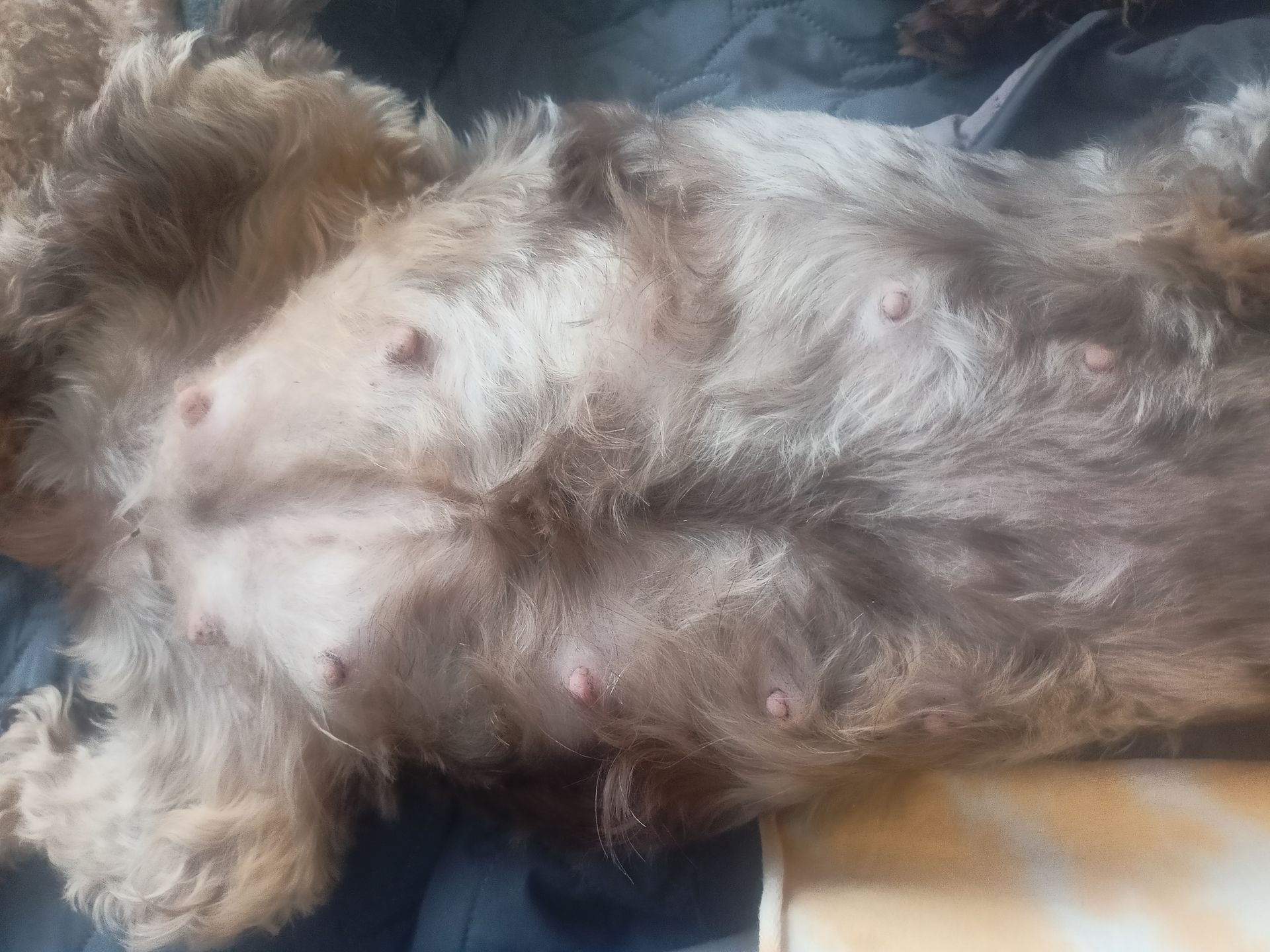 Eule hat sich doch tatsächlich belegen lassen. Oskar war mehrfach an ihr interessiert - und schwupps - hat es geklappt. Wir freuen uns riesig, das die erste Hürde genommen ist - jetzt heißt es Daumen drücken, dass die Belegung Früchte trägt und wir Ende Februar 24 Eules erste Hundekinder begrüßen dürfen.
